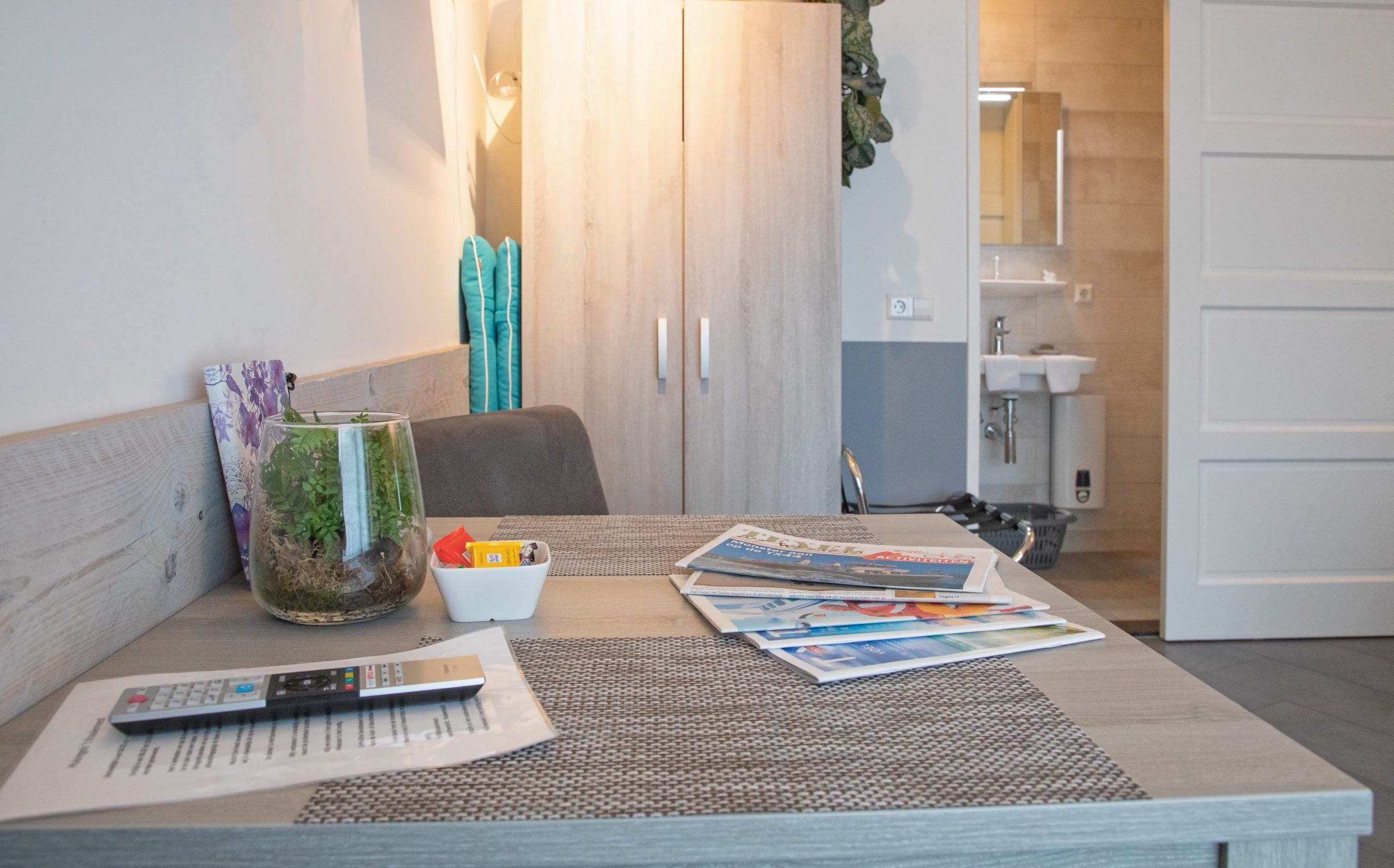 Een hartelijk welkom, ruime kamer met zitje, keukentje met koelkast en koffie-apparaat en waterkoker. Fijne badkamer, prima bed. Terras met zitje. Genoeg restaurantjes op loopafstand. Wij hebben genoten van deze accommodatie en van het uitgebreide ontbijt. Ook fijn dat onze hond warm onthaald werd. Top!